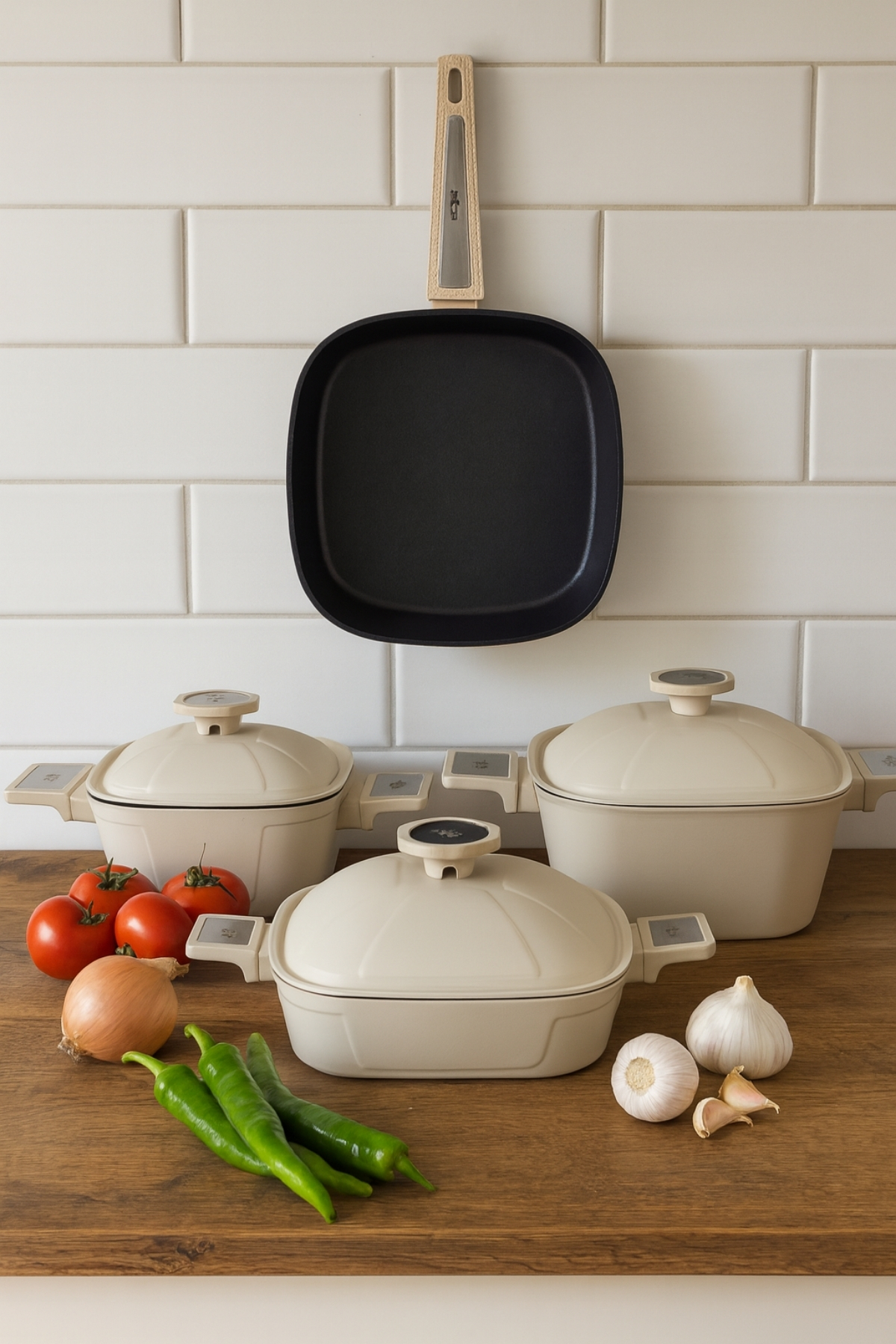 Brett 7 Parça Set; mutfağında düzenli, kontrollü ve uzun ömürlü bir pişirme deneyimi arayanlar için sağlam bir tercih sunar.
