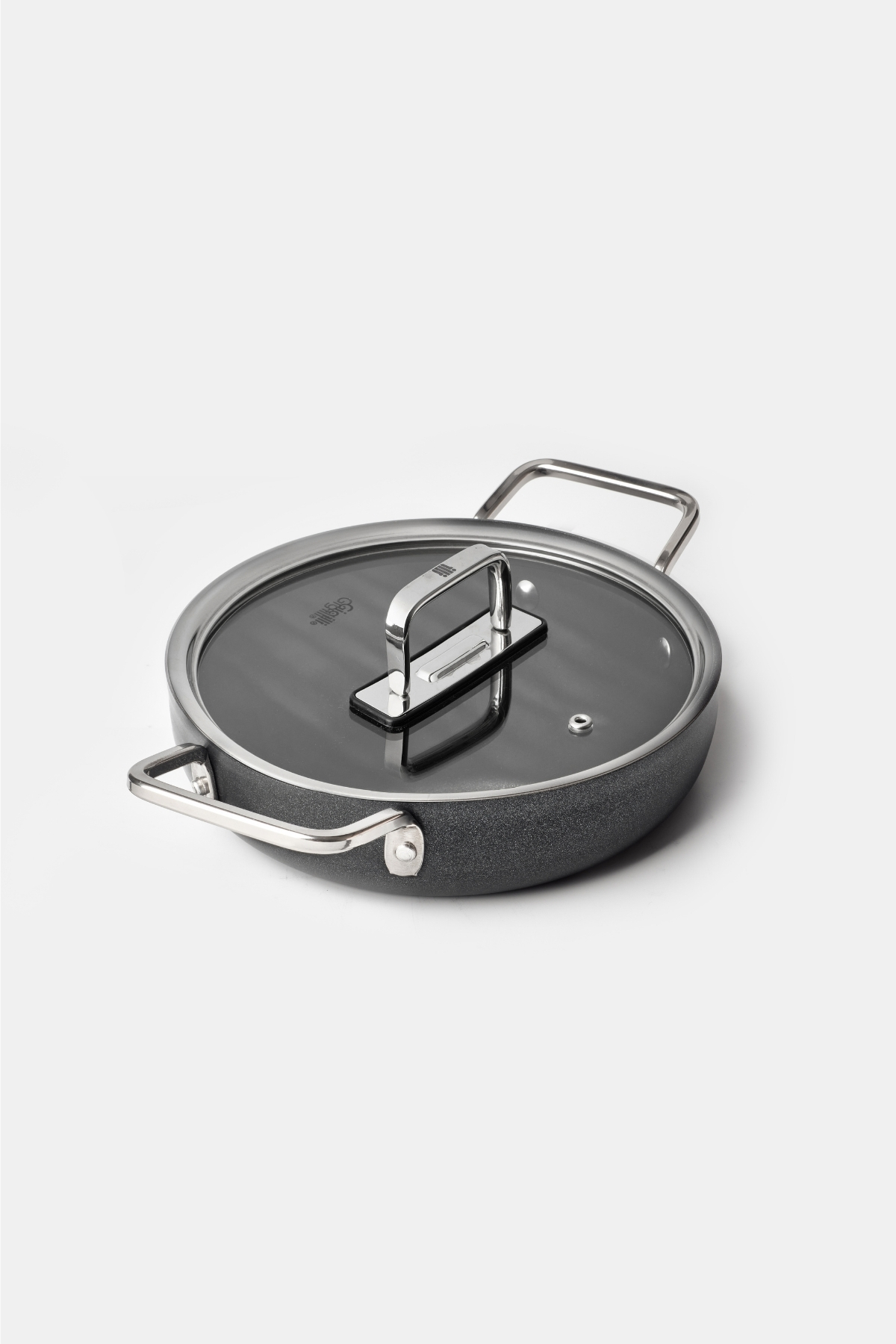 Titanyum kaplamalı iç yüzeyi, yiyeceklerin sahan tabanına yapışmasını önler. Bu yapı, daha az yağ kullanarak sağlıklı pişirme imkânı sunarken temizlik sürecini de kolaylaştırır. Paslanmaz çelik kenarlı, ısıya dayanıklı cam kapaklar sayesinde pişirme sırasında yemeği kontrol etmek mümkündür. Kapaklardaki buhar çıkış özelliği, taşma riskini azaltmaya yardımcı olur.